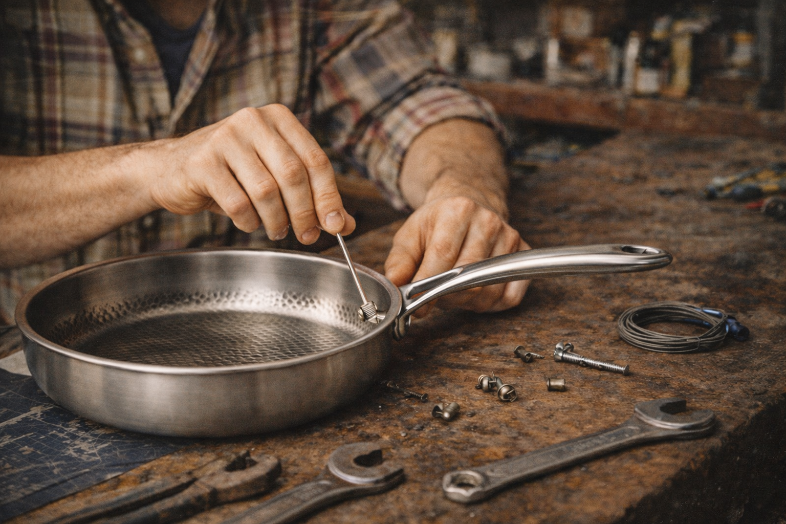 He didn’t start with a factory or outside funding. He started in a garage, with a small cooking setup and the first set of pans he bought with his own money. After long shifts, he kept testing different heat levels, different dishes, different techniques. When something didn’t feel right, he adjusted and tried again. The goal was simple: cookware that performs in real kitchens and holds up through daily use.